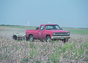 Another way to map soil variability with precision is through Electrical Conductivity (EC) mapping. EC is a technique used for on-the-go, GPS, soil mapping done with a machine rather than a labor intensive grid layout. The machine is simply pulled into the field by truck and the sensors lowered into the soil. This type of mapping uses electricity to determine how conductive the soil is. When the sensors are lowered into the soil, they emit electrodes which then surge through the soil and back to receiving electrodes to complete the circuit. An onboard computer analyzes how conductive the soil was through the measurement of voltage drop by subtracting the received energy from the initial output. The computer also loads the collected data into a map format for instant visualization. The variables collected include soil texture in reference to the actual soil type based on certain clays, sands and silt. This information is important for determining the water retention of the soil and the cation exchange related to pH levels. The pH regulates the nutrient exchange between the soil and plant. The more acidic the soil is the more it impedes the amount of nutrient transfer. The machine also creates a very precise map of actual soil textures by driving in dense linear passes across the field, covering the majority of the field area.